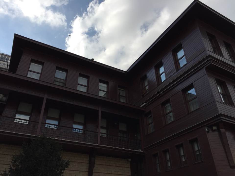courtyard, staring at the flag and his bust. Istanbul is a pretty loud city,